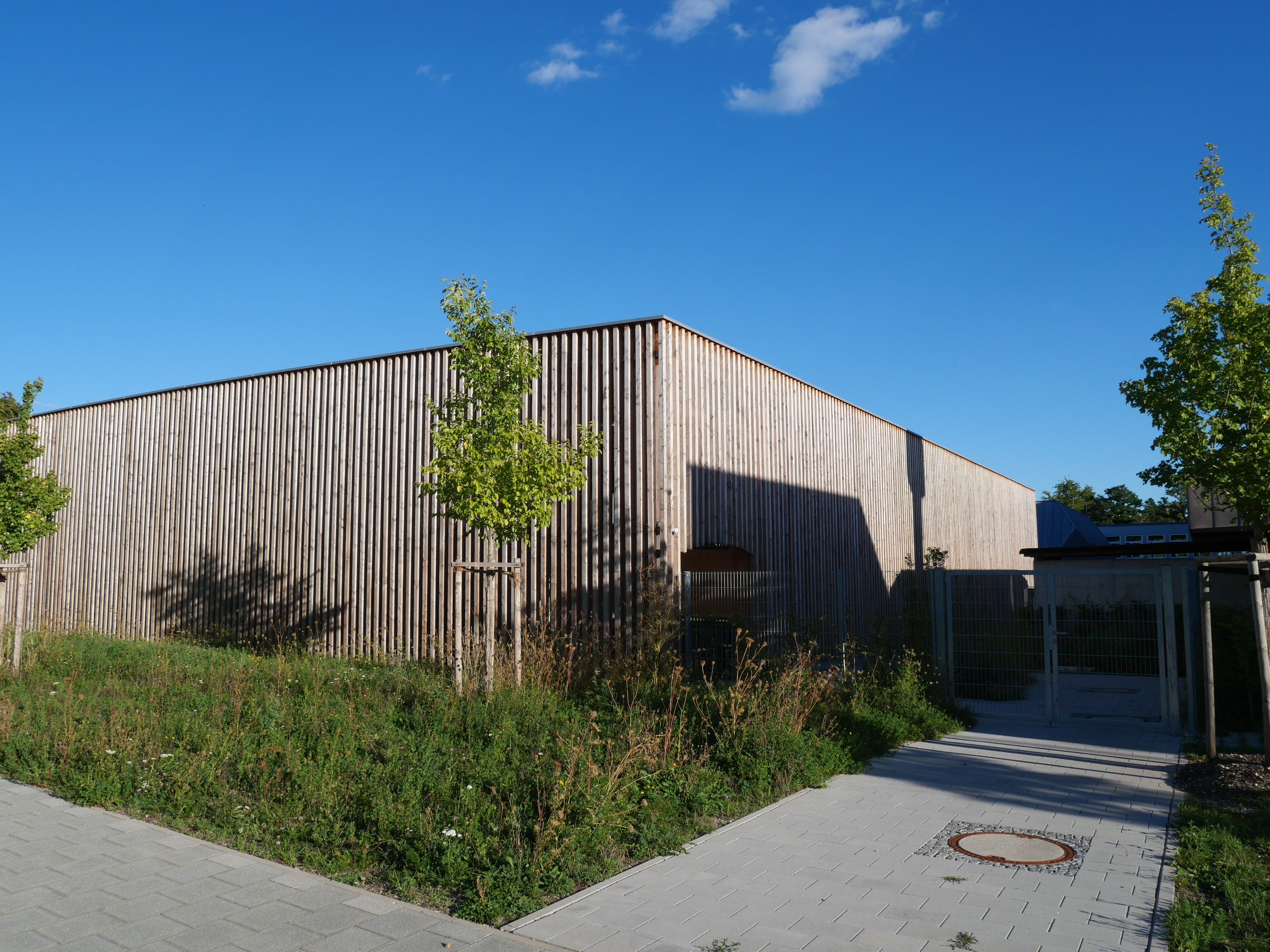 Heute beschäftigen wir uns mit einem Neubau auf dem Gelände des Bayerischen Bauindustrieverbands vor den Toren Wetzendorfs im Norden Nürnbergs. Hier befinden sich auf einer ziemlich großen Grundstücksfläche Anlagen zur Weiterbildung im Bereich Bau und Handwerk. Dazu gehören Schulungsräume, Unterkünfte, Sportanlagen, Werkstätten und einiges mehr.
