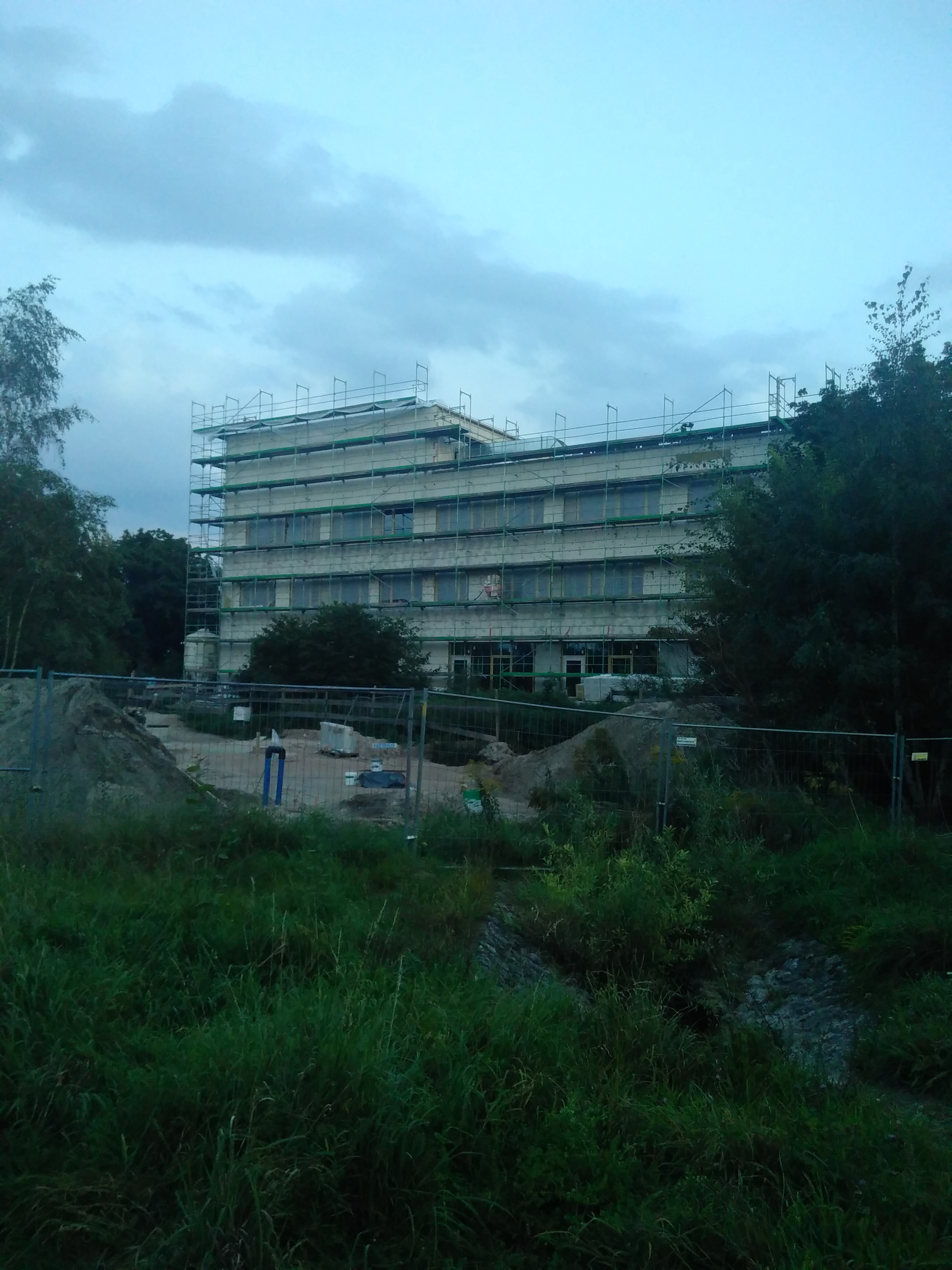 Bilder davon, wie es hier zuvor aussah, habe ich leider keine im Repertoire. Daher mache ich den Einstieg mit zwei Bildern, die während der Bauzeit der Schule entstanden sind.