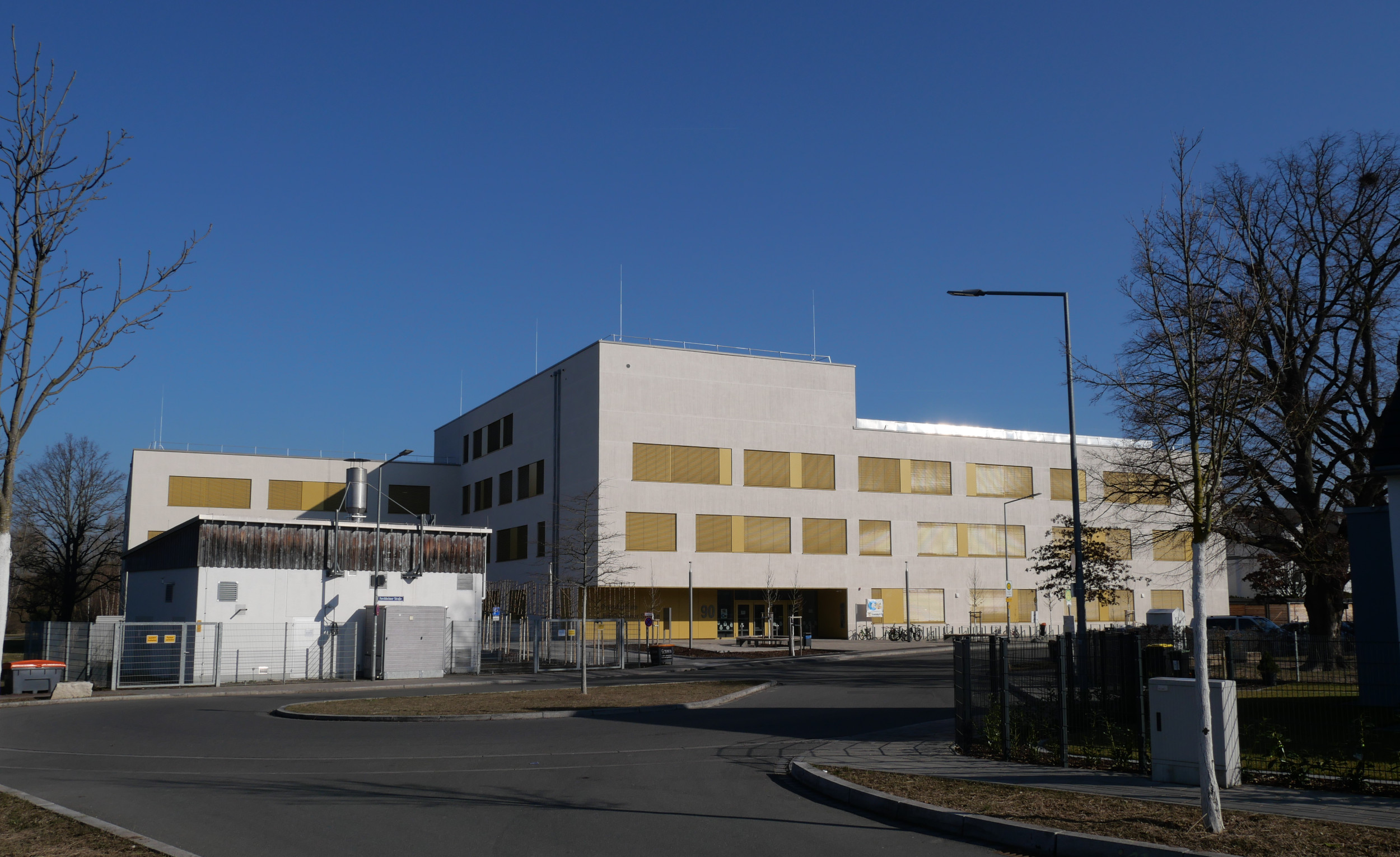 Blick auf die Südseite der fertiggestellten Schule. Aufnahme vom 6. März 2025.
