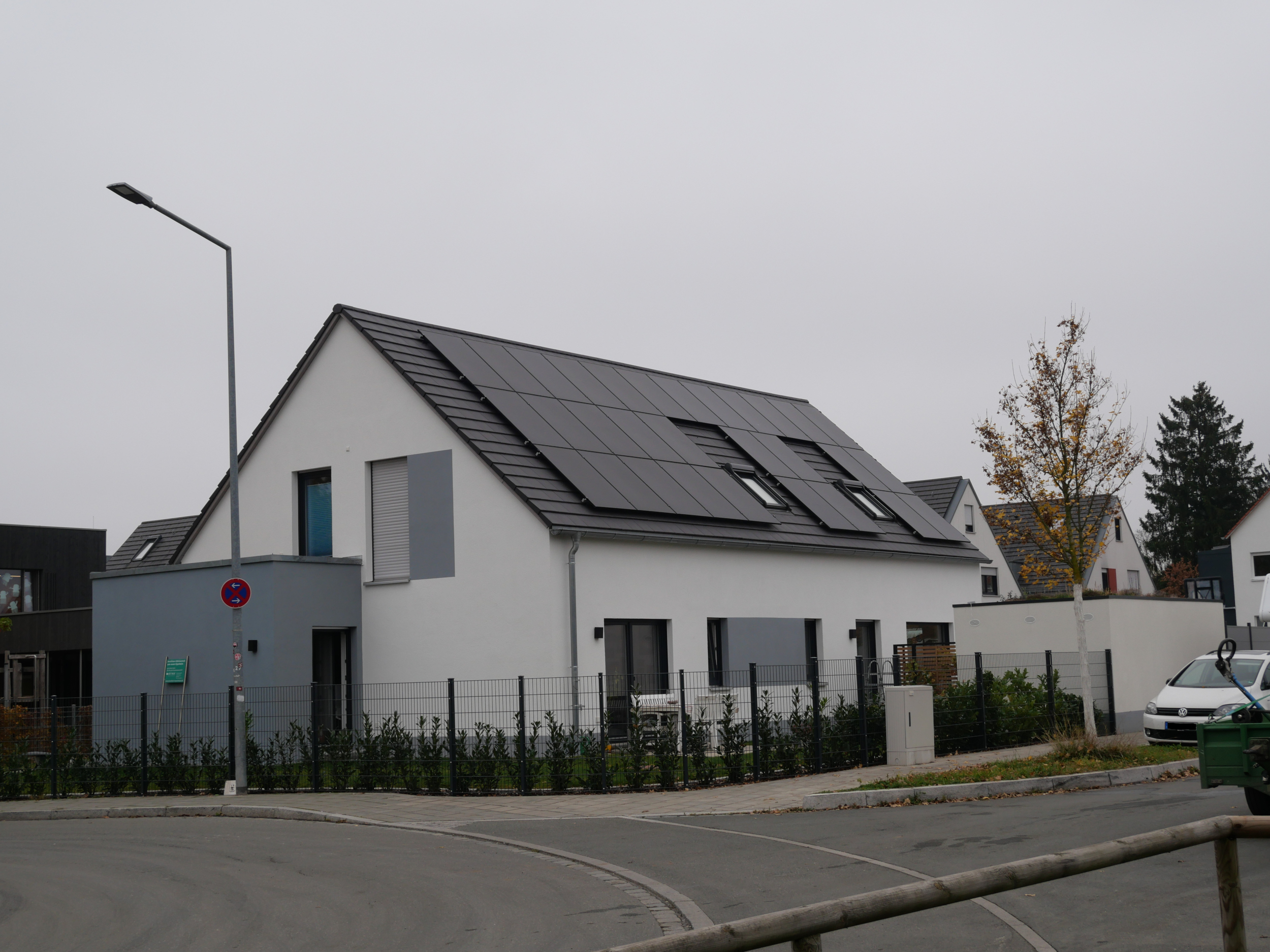 Blick auf ein junges Haus direkt gegenüber der Schule. Aufnahme vom 7. November 2025.
